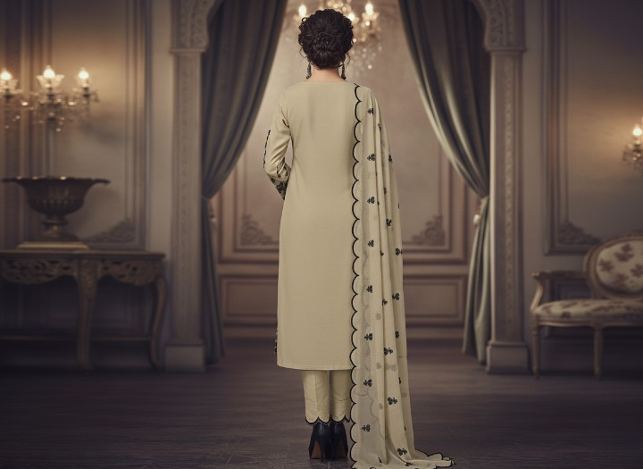 [Designed with intricate black threadwork, this outfit beautifully blends tradition and modern charm, giving you a look that stands out with grace.]